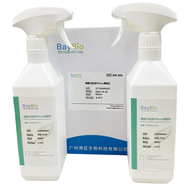 灣區(qū)生物(wù)核酸污染及RNase清除劑(貨号:BR-003)分(fēn)為(wèi)A液與B液, 液體(tǐ)本身均無毒,在混合後,會形成一種有(yǒu)效的、壽命短的混合液,以接觸方式起作(zuò)用(yòng),迅速降解表面上的高水平污染DNA和RNA,以及RNase,可(kě)在數分(fēn)鍾内去除多(duō)種表面的污染。